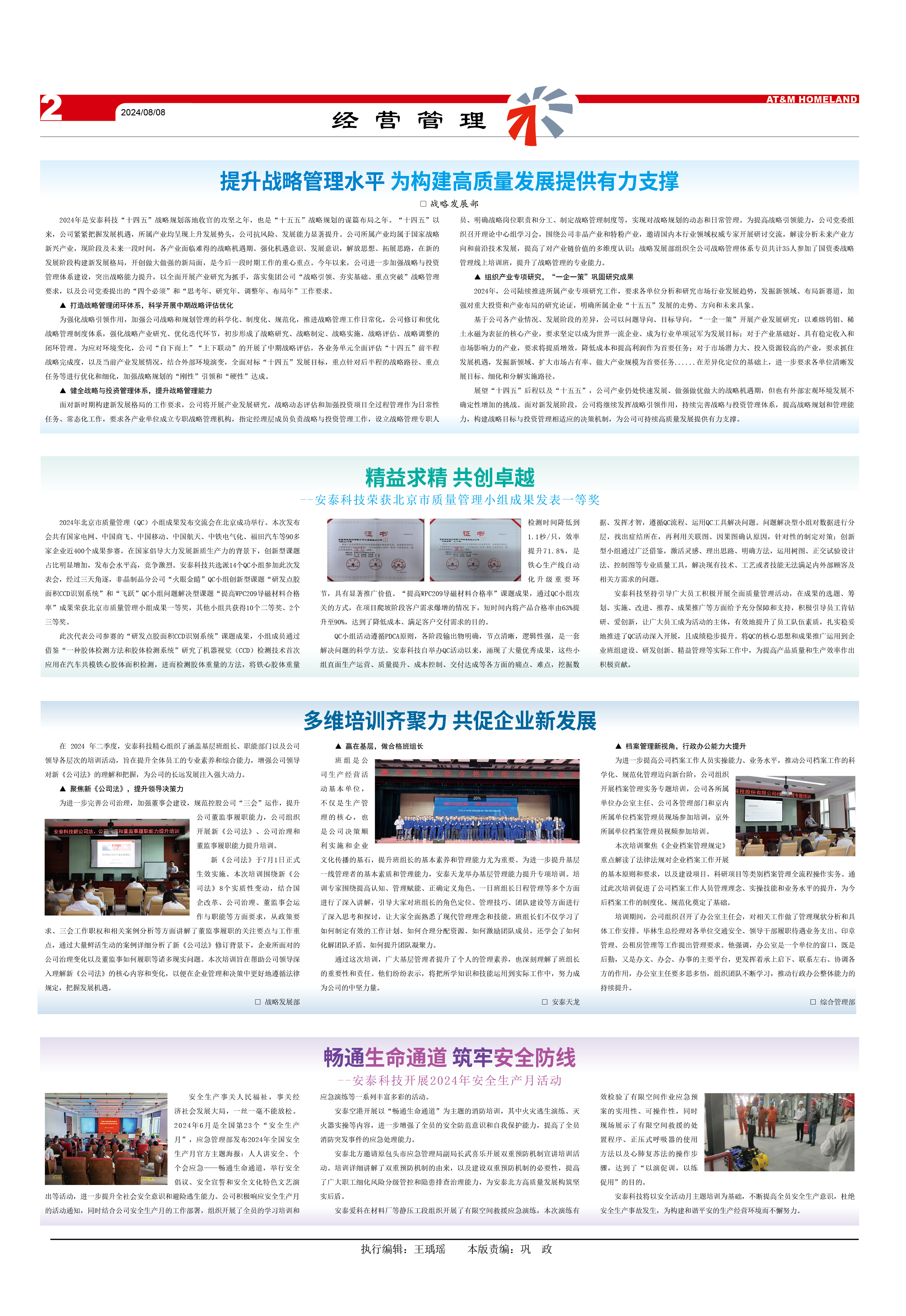 2024年是安泰科技“十四五”戰(zhàn)略規(guī)劃落地收官的攻堅(jiān)之年,也是“十五五”戰(zhàn)略規(guī)劃的謀篇布局之年。“十四五”以來(lái),公司緊緊把握發(fā)展機(jī)遇,所屬產(chǎn)業(yè)均呈現(xiàn)上升發(fā)展勢(shì)頭,公司抗風(fēng)險(xiǎn)、發(fā)展能力顯著提升。公司所屬產(chǎn)業(yè)均屬于國(guó)家戰(zhàn)略新興產(chǎn)業(yè),現(xiàn)階段及未來(lái)一段時(shí)間,各產(chǎn)業(yè)面臨難得的戰(zhàn)略機(jī)遇期。強(qiáng)化機(jī)遇意識(shí)、發(fā)展意識(shí),解放思想、拓展思路,在新的發(fā)展階段構(gòu)建新發(fā)展格局,開(kāi)創(chuàng)做大做強(qiáng)的新局面,是今后一段時(shí)期工作的重心重點(diǎn)。今年以來(lái),公司進(jìn)一步加強(qiáng)戰(zhàn)略與投資管理體系建設(shè),突出戰(zhàn)略能力提升,以全面開(kāi)展產(chǎn)業(yè)研究為抓手,落實(shí)集團(tuán)公司“戰(zhàn)略引領(lǐng)、夯實(shí)基礎(chǔ)、重點(diǎn)突破”戰(zhàn)略管理要求,以及公司黨委提出的“四個(gè)必須”和“思考年、研究年、調(diào)整年、布局年”工作要求。