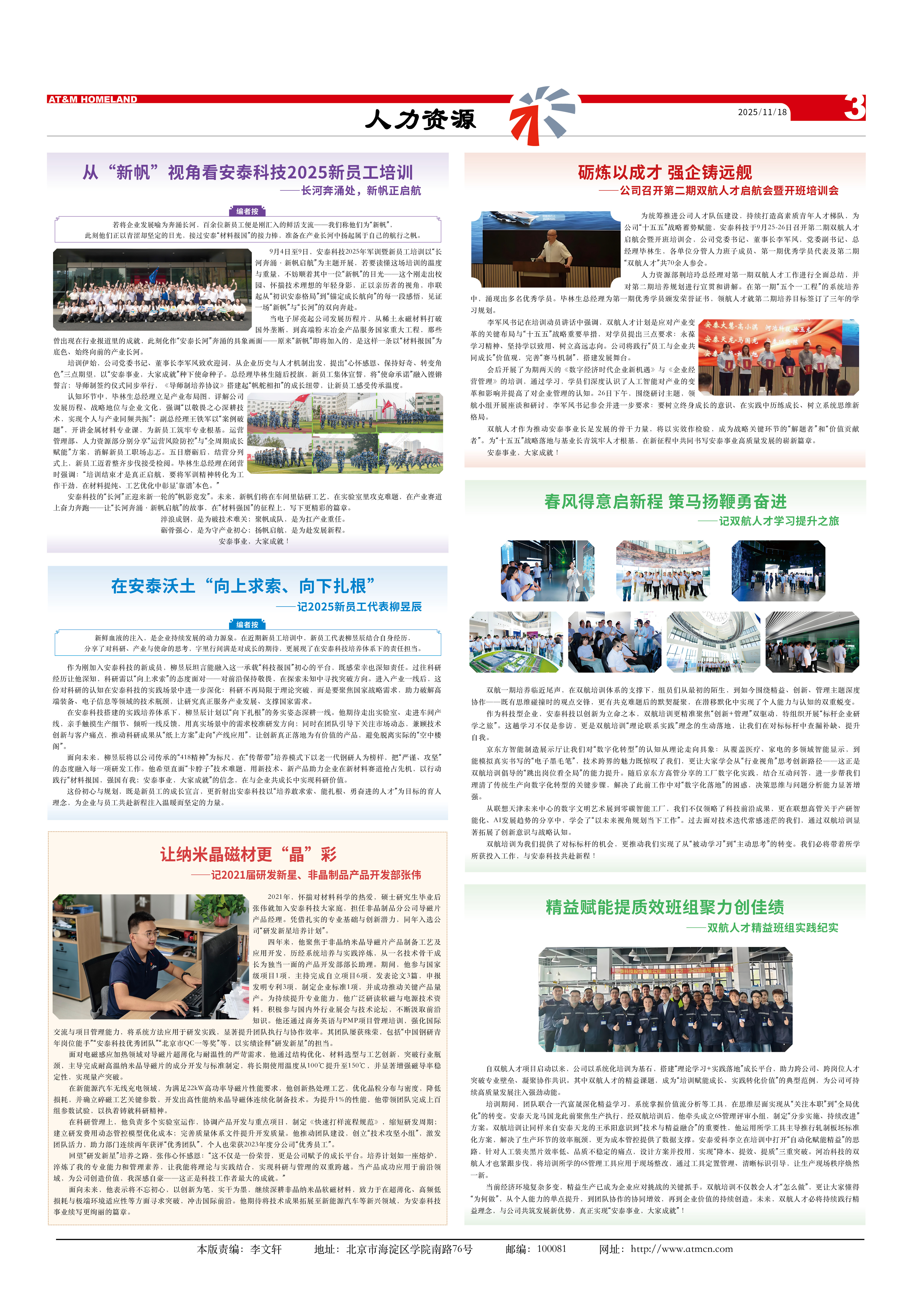 編者按:若將企業(yè)發(fā)展喻為奔涌長河,百余位新員工便是剛匯入的鮮活支流——我們稱他們?yōu)椤靶路保丝趟麄冋郧酀瓍s堅定的目光,接過安泰“材料報國”的接力棒,準(zhǔn)備在產(chǎn)業(yè)長河中揚起屬于自己的航行之帆。
